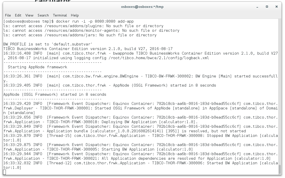 Step 28: Run the command 'docker run -i -p 8080:8080 add-app' to start the container. You should get the following response: